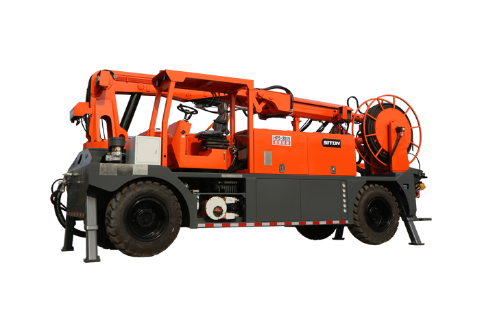 HP5-3515工程橋式濕噴臺車(大方量)每小時方量提高到35方,可選配大型空壓機,四輪四轉向,濕式驅動橋,極大地改善了隧道內部混凝土噴射施工人員的工作環境,提高了施工效率,減少了混凝土消耗量,切實保障施工質量,雙動力工作系統,更低碳排放,更切合環保理念。是水利水電、鐵路、公路等隧道施工的更佳選擇。HP5濕噴臺車一次性平行作業工作范圍寬26mx高15m巷道,每小時可噴>35m3,行走在20°坡度內、可噴頂邦、側邦、底板、掌子面任意位置無死角噴射;該機作業機構采用全液壓驅動,柴油動力行走,自動慘量速凝劑精度高。 適應范圍:公路隧道、鐵路、水利水電、地鐵以及國防工程、礦山及其他各種地下工程等隧道和涵洞的濕噴作業。自帶空壓機系統(選配)能更好的配合隧道機械成套化施工,節省外部空壓機系統,采用濕式車橋底盤為安全性提供更好的保障。 根據工況需求能選擇高原專用系統,以適應作業需求。